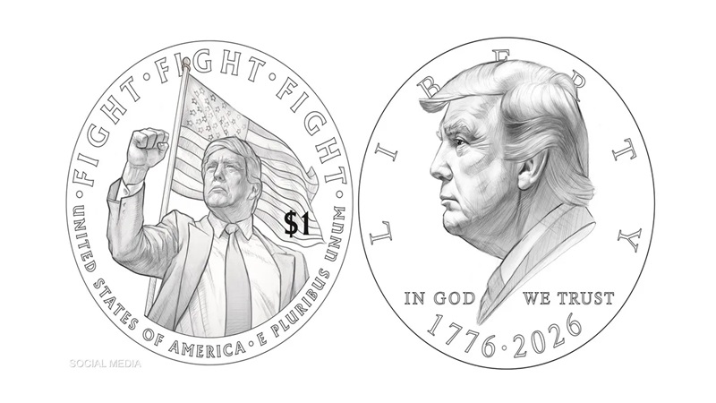 وكان الكونغرس قد أقر عام 2020 تشريعا وقعه ترامب خلال ولايته الأولى يسمح لوزارة الخزانة بإصدار عملات معدنية من فئة دولار واحد "بتصاميم رمزية للاحتفال بالذكرى المئوية الخامسة والخمسين للولايات المتحدة".