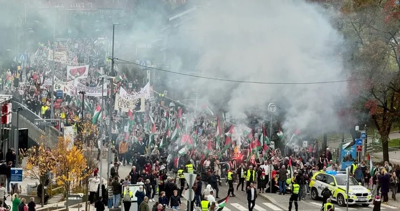 شهدت أوسلو، السبت، احتجاجات واسعة وإجراءات أمنية مشددة، قبيل مواجهة منتخب النرويج أمام نظيره الإسرائيلي ضمن تصفيات كأس العالم، وسط انقسام بين الجماهير النرويجية بشأن مشاركة إسرائيل في التصفيات على خلفية حرب غزة.