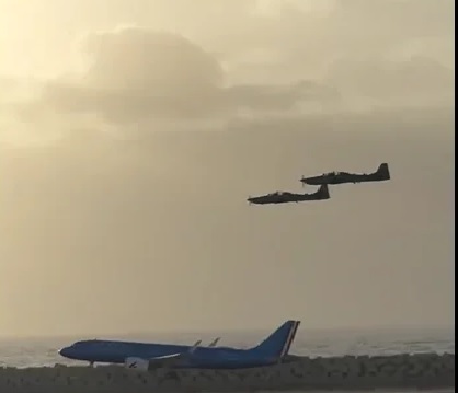 ويظهر في الفيديو الطائرتان التابعتان للجيش وهما ترافقان طائرة البابا في الأجواء اللبنانية حتى هبوطها في مطار رفيق الحريري الدولي في بيروت.