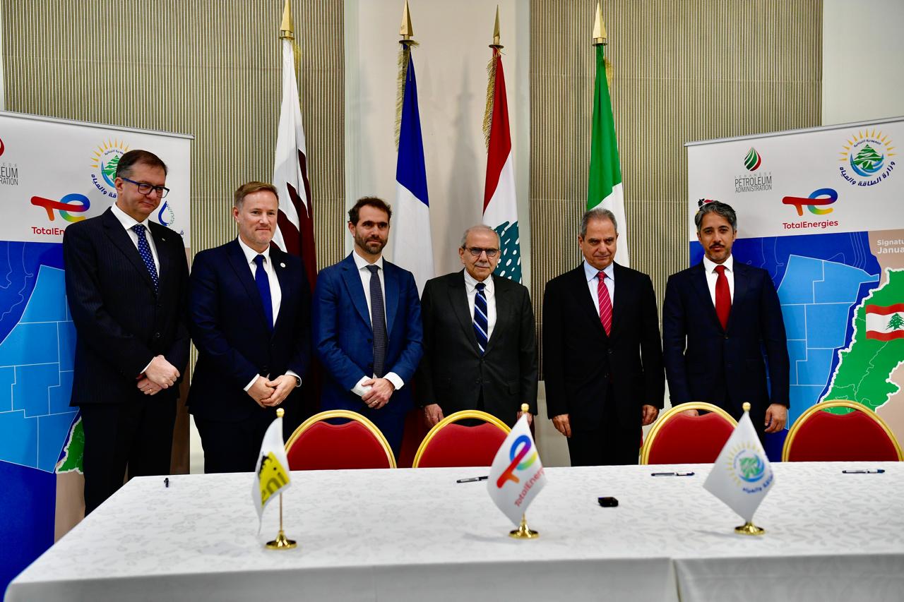 وقّع عن الجانب اللبناني وزير الطاقة والمياه جو صدي، وعن الشركات كلّ من مدير توتال لبنان رومان دولامارفينيار، ورئيس التنقيب في “قطر للطاقة” علي عبدالله المانع، ومدير “إيني لبنان” أندريا كوزي، بحضور رئيس هيئة إدارة قطاع البترول غابي دعبول وعدد من السفراء والمسؤولين.
