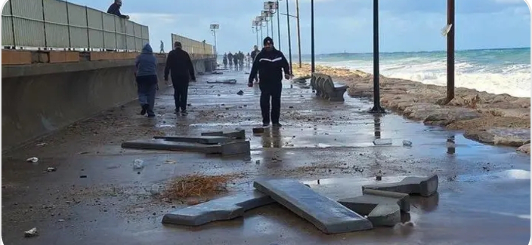 وفي وقت سابق، تسبّبت العاصفة بأضرار في مدينة الرئيس رفيق الحريري الرياضية، حيث تحطّمت بعض المقاعد الأسمنتية وتغطّت أجزاء من الممشى بالأتربة والحجارة والنفايات التي دفعتها أمواج البحر، وقد سارعت فرق الطوارئ في بلدية صيدا إلى رفع الركام وتنظيف المكان.
