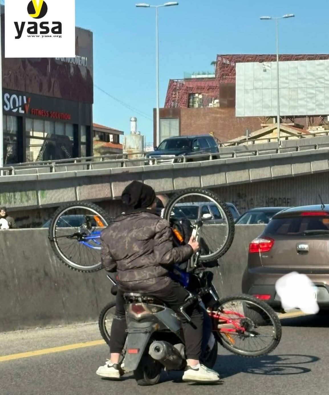 أفادت اليازا برصد مُخالفة خطيرة على أوتوستراد الزلقا، حيث شوهد شخصان على دراجة نارية يحملان دراجتين هوائيتين، في مخالفة صارخة لقواعد السلامة المرورية وتعريض مباشر للأرواح للخطر.