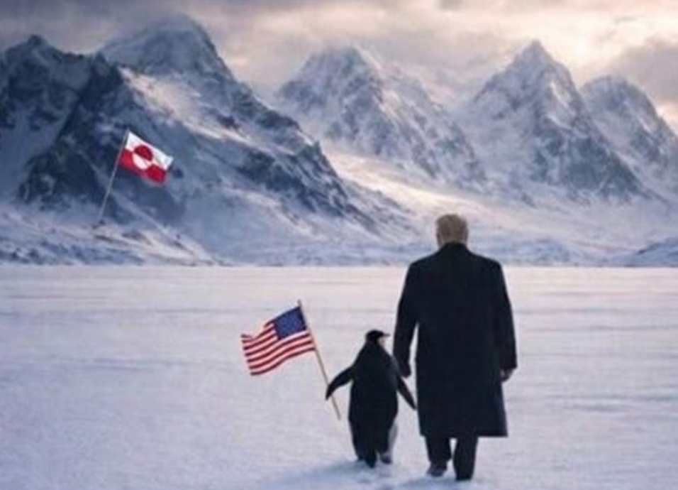 فقد أثارت صورة مولدة بالذكاء الاصطناعي، نشرها البيت الأبيض أمس، وتظهر الرئيس الأميركي دونالد ترامب ماشياً فوق الثلوج في غرينلاند، وهو يمسك ببطريق، موجة من السخرية والانتقادات.
