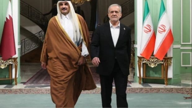 بحث أمير قطر الشيخ تميم بن حمد آل ثاني والرئيس الإيراني مسعود بزشكيان هاتفيا تطورات الأوضاع الراهنة وجهود خفض التصعيد في المنطقة، وفق ما أفادت وكالة الأنباء القطرية "قنا" ، في وقت تؤكّد فيه طهران استعدادها للحرب في مواجهة التهديدات الأميركية بتدخل عسكري.