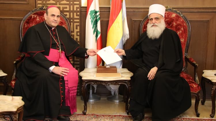 التقى شيخ العقل لطائفة الموحدين الدروز الشيخ الدكتور سامي ابي المنى في دار الطائفة - فردان اليوم السفير البابوي في لبنان المونسنيور باولو بورجيا، ناقلاً اليه تحيات قداسة بابا الفاتيكان لاوون الرابع عشر، وتسليمه رسالة من الحبر الأعظم تعبّر عن تقديره لسماحته وكلمته التي القاها في ساحة الشهداء، وشكره على حسن الاستقبال خلال زيارته الى لبنان.