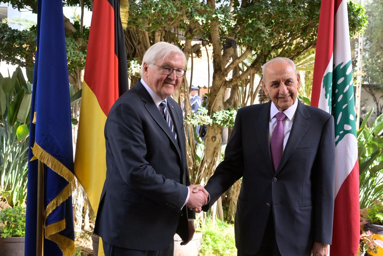 استقبل رئيس مجلس النواب نبيه بري في مقر الرئاسة الثانية في عين التينة رئيس ألمانيا فرانك فالتر شتاينماير والوفد المرافق، بحضور السفير الألماني كورت جورج شتوكل وسفيرة لبنان لدى ألمانيا عبير علي والمستشار الإعلامي علي حمدان، حيث جرى بحث التطورات في لبنان والمنطقة والعلاقات الثنائية.