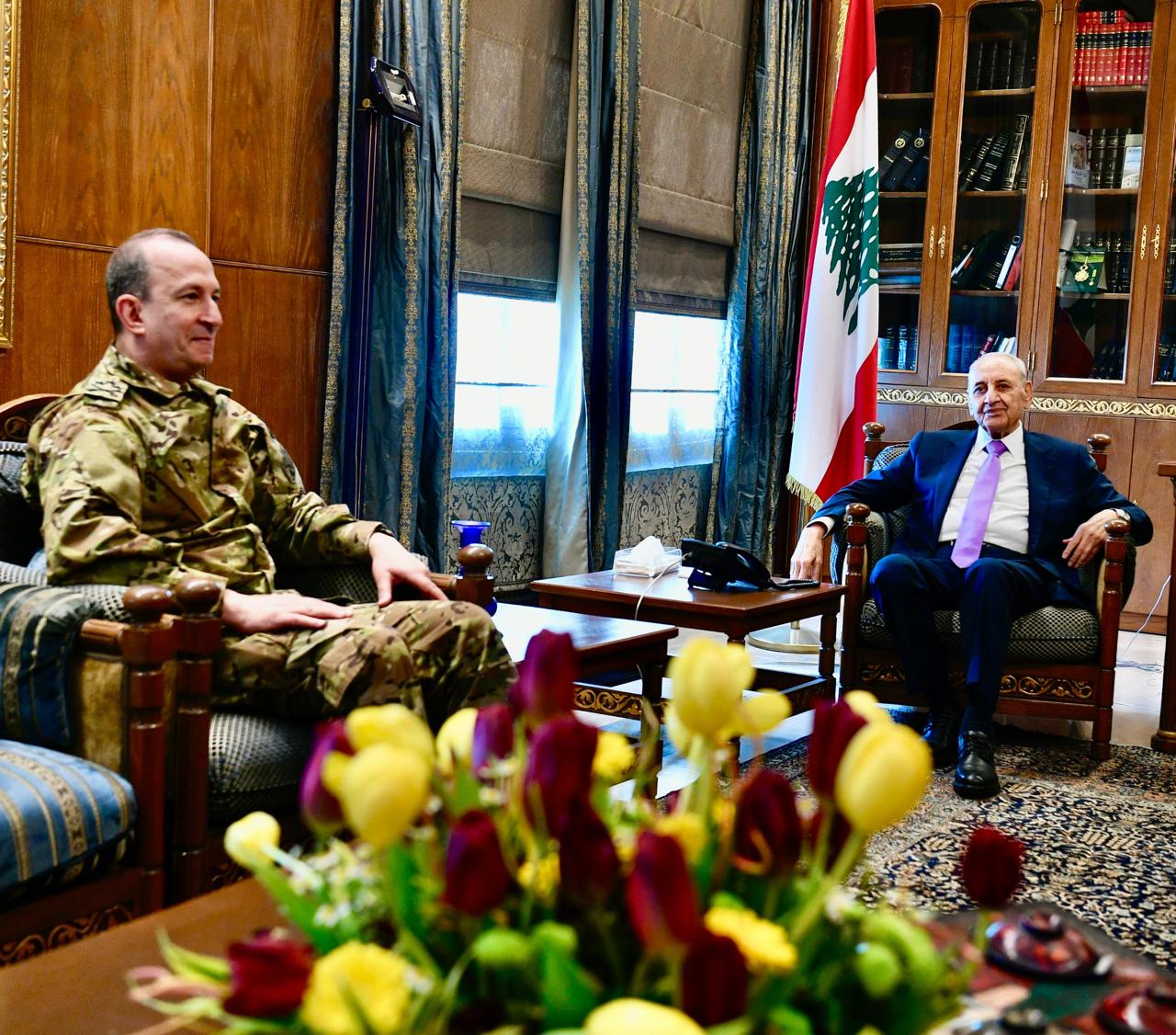 يلتقي رئيس مجلس النواب نبيه برّي، في هذه الأثناء، في عين التينة قائد الجيش العماد رودولف هيكل.