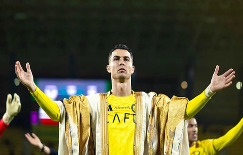 مرتديا "البشت" التقليدي السعودي احتفاء بـ"يوم التأسيس" الذي يصادف في 22 شباط، احتفل الـ"دون" مع زملائه في "الأول بارك" بالتفوق على الحزم برباعية بيضاء، سجل ابن الـ41 عاما منها ثنائية أبقته على بعد 3 أهداف من متصدر الهدافين، نجم الأهلي الإنكليزي إيفان توني (23 هدفا).