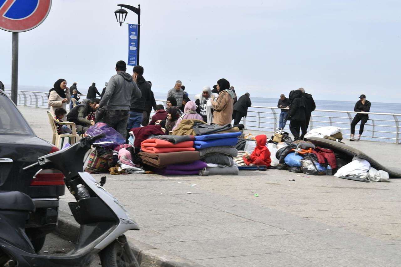 عدسة "إيست نيوز" في جولة ضمن العاصمة بيروت ترصد اوضاع النازحين الذين افترشوا الارصفة والكورنيش البحري والحدائق.