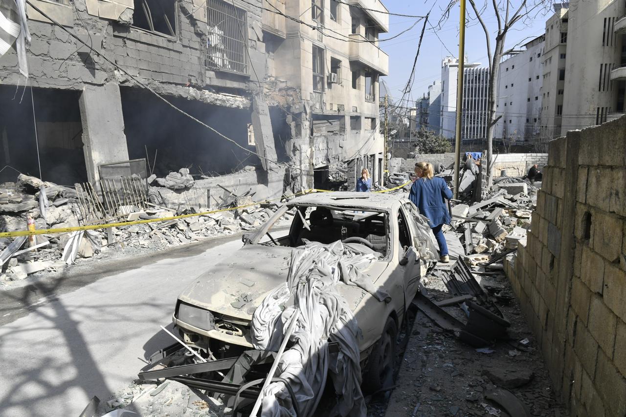 وتُظهر الصور حجم الأضرار التي لحقت بالمبنى والمحيط القريب.