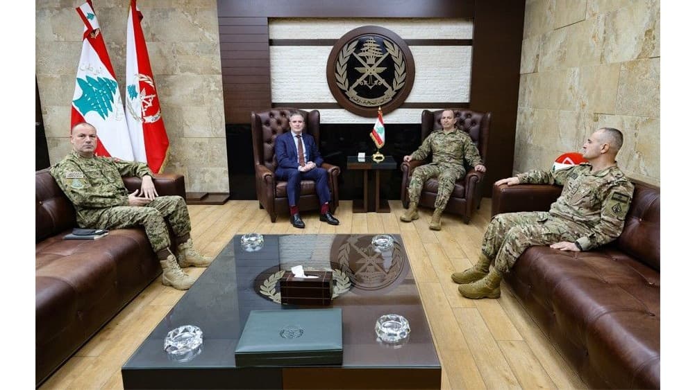 إستقبل قائد الجيش العماد رودولف هيكل في مكتبه، في اليرزة سفير كندا غريغوي غاليغان، يرافقه الملحق العسكري الكندي المقدم جواد الخيري.