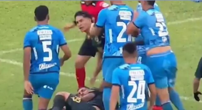 "15 لاعبًا فقط أنهوا المباراة".. بالفيديو: مباراة كروية تتحول إلى حلبة مصارعة
