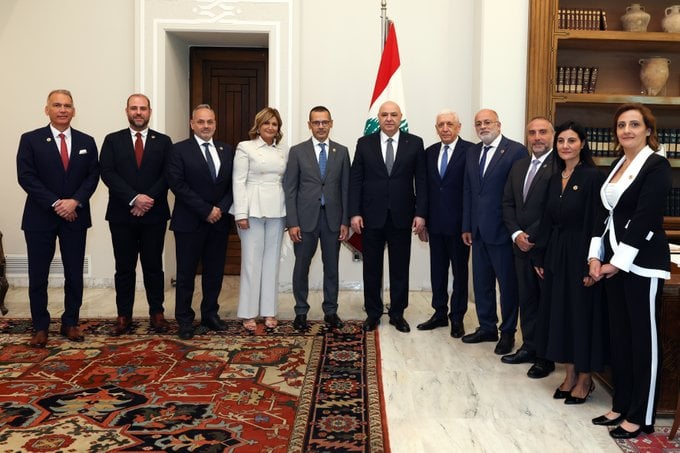 من جهة أخرى، أعلن المحامي إيلي محفوض، باسم وفد من حركة التغيير بعد لقائه رئيس الجمهورية، أنّ الوفد جدّد دعمه المطلق لمؤسسة الجيش اللبناني، معتبرًا أنها الضمانة الأساسية لوحدة الوطن واستقراره. وأكد أن رئيس الجمهورية يدرك حساسية المرحلة ويقود العمل المؤسساتي ضمن الإطار الدستوري الكامل، داعيًا إلى منح العهد الفرصة الكاملة لمتابعة مسار النهوض، ومشيرًا إلى أنّ المرحلة المقبلة ستحمل بوادر إيجابية على المستويين السياسي والاقتصادي.