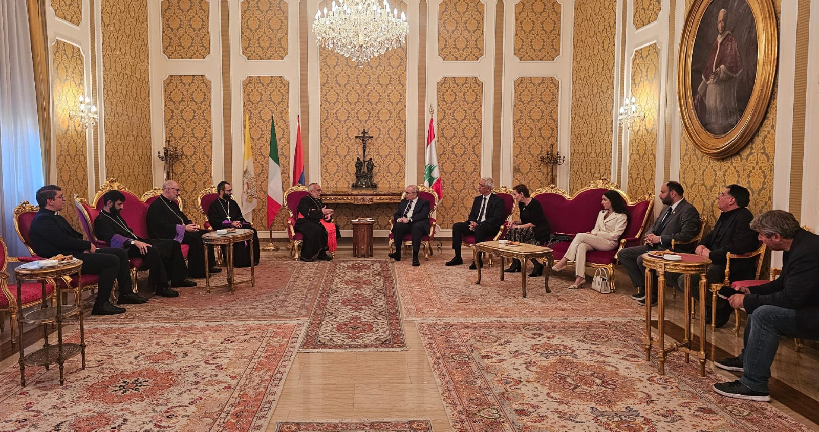 استقبل البطريرك روفائيل بدروس الحادي والعشرون ميناسيان، كاثوليكوس بطريرك بيت كيليكيا للأرمن الكاثوليك، رئيس مجلس الوزراء نواف سلام في المعهد الحبري الأرمني في روما.