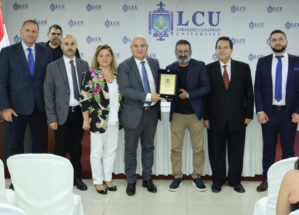 وفي ختام اللقاء، قدّمت الجامعة درعًا تكريمية للفنان جورج خبّاز تقديرًا لمسيرته المشرقة وإسهاماته في ترسيخ صورة الفن الهادف وصون القيم الثقافية والإنسانية، وذلك بحضور رئيس الجامعة البروفسور الدكتور جلال حلواني، المؤسس الدكتور روني أبي نخله، والمديرة رانيا حبيب.