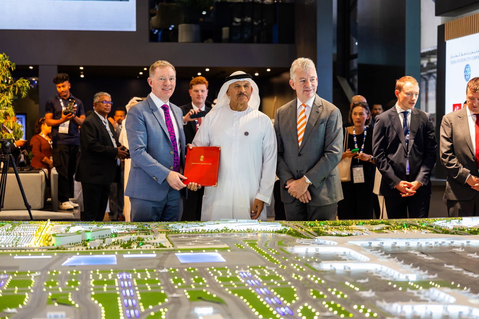 ويأتي هذا الدعم لضمان مساهمة الشركات والمؤسسات البريطانية بخبراتها المتميزة في هذا المشروع التنموي، الذي يهدف إلى ترسيخ مكانة دبي كأكبر مركز طيران على مستوى العالم. وجرت مراسم في جناح دبي الجنوب في المعرض، حيث سلّم السير كريس براينت، وزير التجارة البريطاني، الوثيقة إلى المهندس خليفة الزفين، الرئيس التنفيذي لمؤسسة دبي لمدينة الطيران ومشاريع دبي لهندسة الطيران، وبول غريفيث، الرئيس التنفيذي لمطارات دبي.