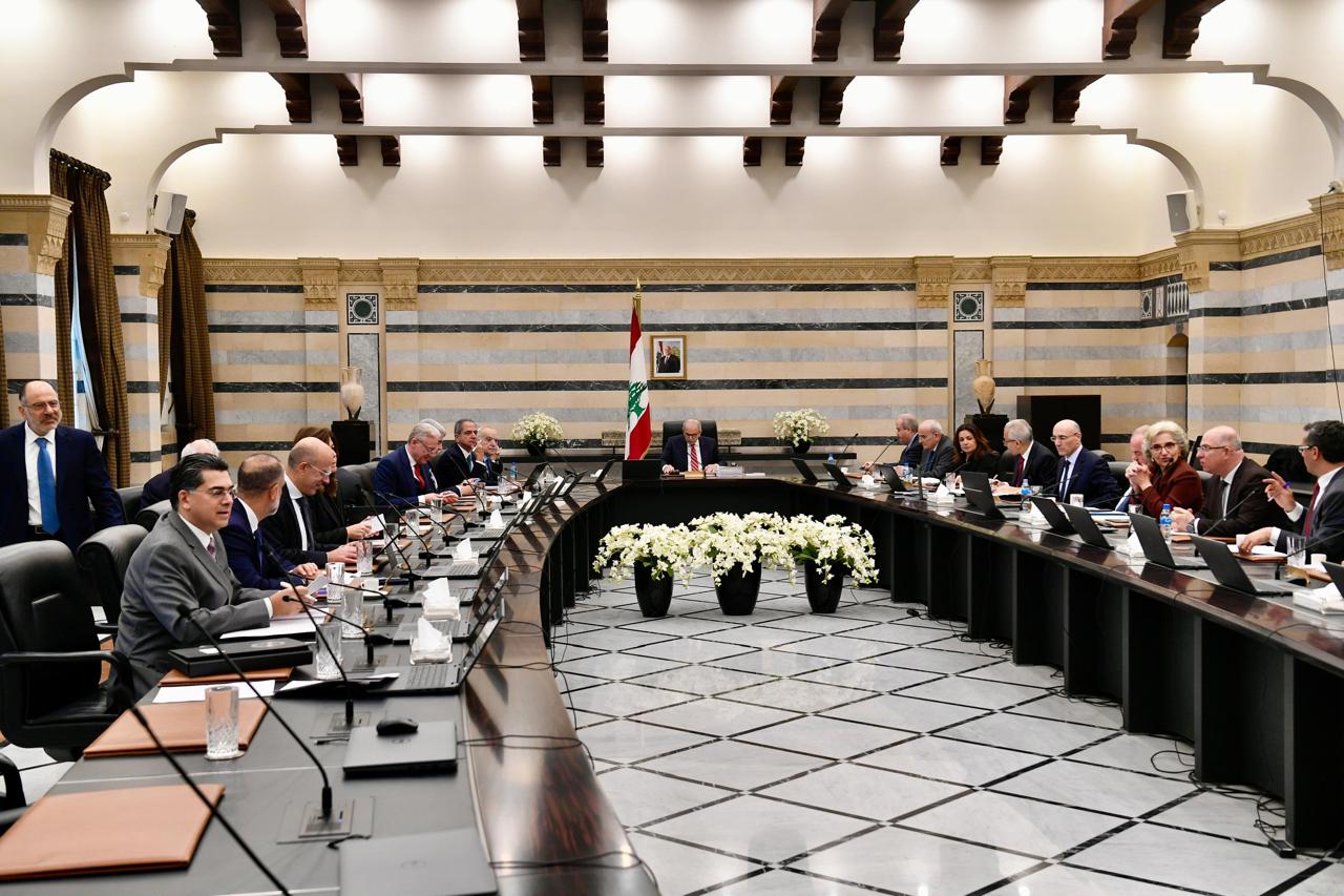 ترأس رئيس مجلس الوزراء نواف سلام جلسة مجلس الوزراء في السرايا الحكومية، في حضور نائب رئيس الحكومة الدكتور طارق متري، ووزراء: المال ياسين جابر، الثقافة غسان سلامة، الدفاع الوطني ميشال منسى ، الطاقة والمياه جو الصدي، الشؤون الاجتماعية حنين السيد، الخارجية والمغتربين يوسف رجي، الاقتصاد والتجارة عامر البساط، المهجرين والدولة لشؤون التكنولوجيا والذكاء الاصطناعي كمال شحادة، الداخلية والبلديات العميد أحمد الحجار، العدل عادل نصار، الاتصالات شارل الحاج، الشباب والرياضة نورا باير اقتداريان، التربية والتعليم العالي ريما كرامي، الصناعة جو عيس الخوري، شؤون التنمية الادارية فادي مكي، العمل محمد حيدر، الأشغال العامة والنقل فايز رسامني، الزراعة نزار هاني، الإعلام المحامي د. بول مرقص، البيئة تمارا الزين، والصحة العامة ركان ناصر الدين.