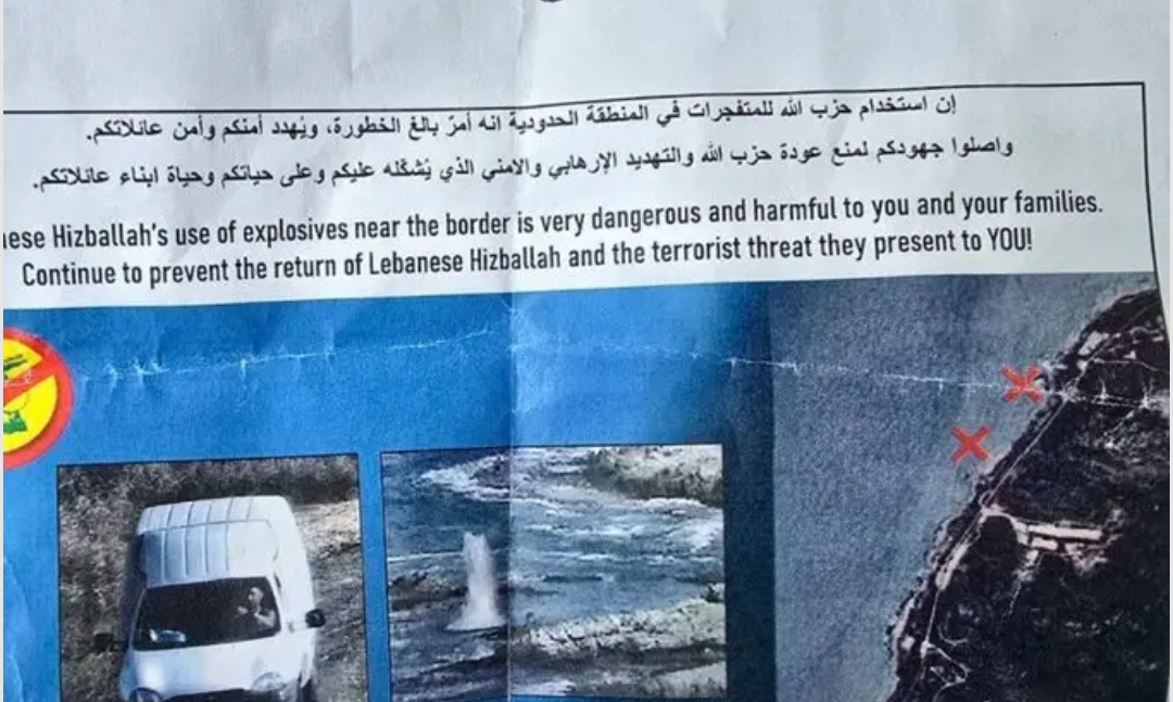ألقت طائرات إسرائيلية مناشير تهديدية وتحريضية فوق بلدة الناقورة في جنوب لبنان، استهدفت بشكل مباشر صيّادي الأسماك في المنطقة.