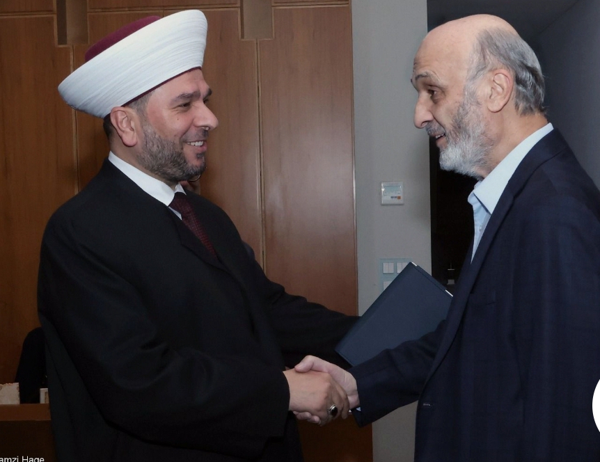 التقى رئيس حزب "القوات اللبنانية" سمير جعجع في معراب عضو المجلس الشرعي الإسلامي الأعلى الشيخ فايز سيف، موفداً من مفتي الجمهورية الشيخ عبد اللطيف دريان، في حضور رئيس مكتب التواصل مع المرجعيات الروحية في الحزب أنطوان مراد.