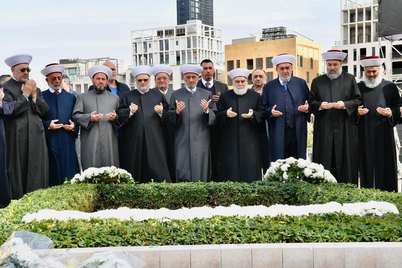 قبل يومين من الذكرى الـ 21: مفتي الجمهورية وعدد من المشايخ يزورون ضريح الشهيد رفيق الحريري..