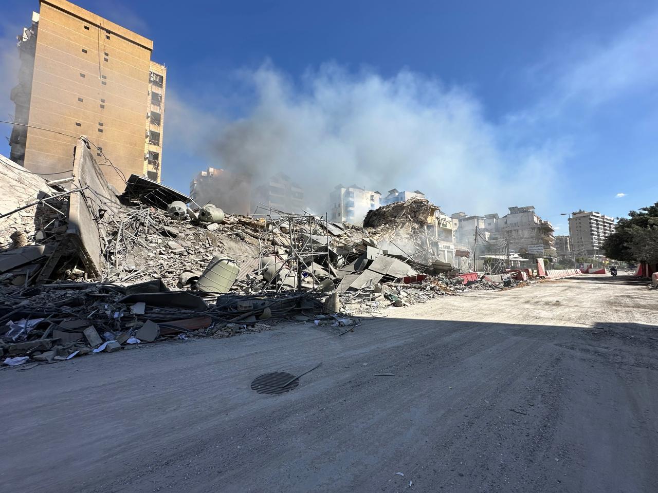 عدسة "إيست نيوز" ترصد آثار الدمار جراء الغارة الإسرائيلية على مؤسسة القرض الحسن أمام كنيسة مار مخايل في الضاحية الجنوبية.