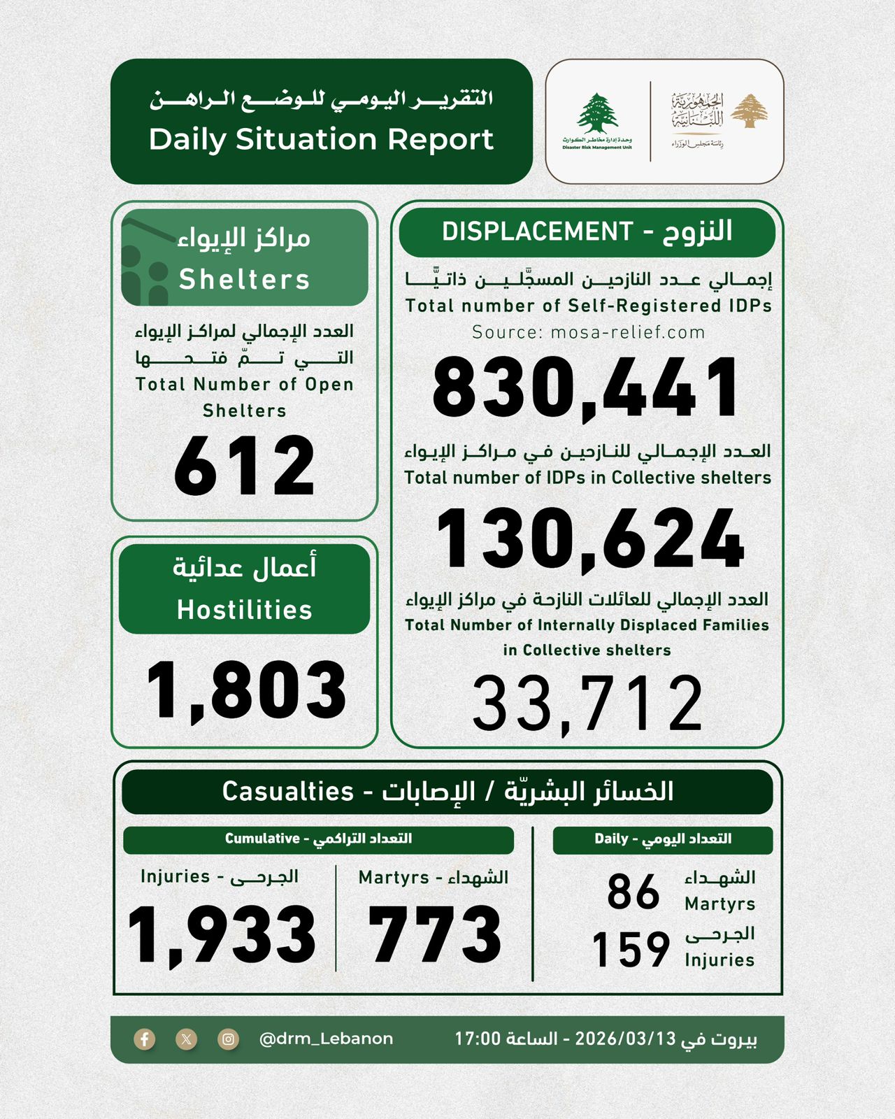 صدر التقرير اليومي للوضع الراهن، عن "وحدة إدارة مخاطر الكوارث" في السراي الكبير، وفي تفاصيله: