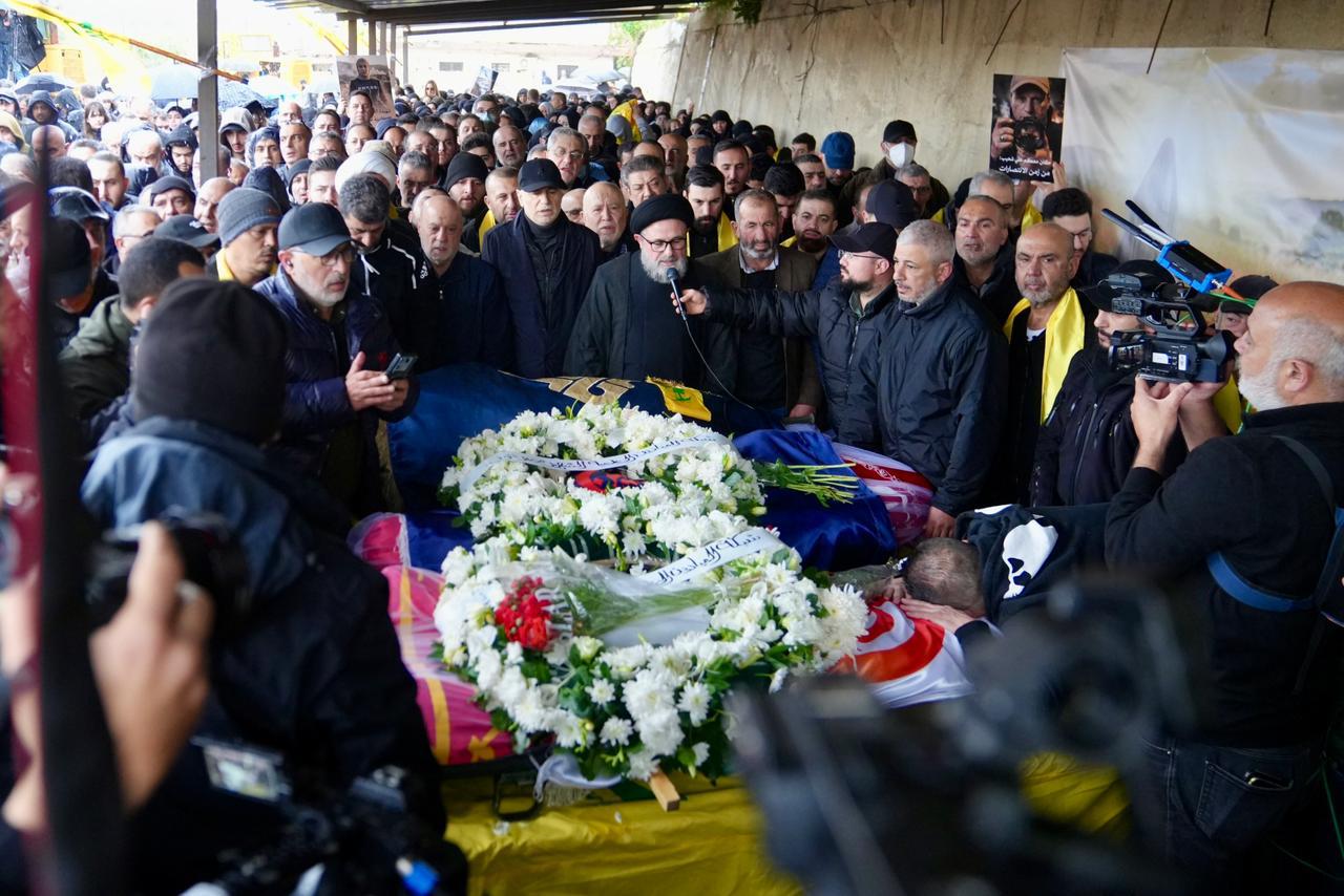 واكبت عدسة "إيست نيوز" قيام حشود شعبية وصحافية بتوديع الصحفيين علي شعيب وفاطمة فتوني ومحمد فتوني بعد وصول جثامينهم إلى روضة الإمام الصادق في الشويفات.