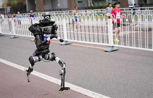 حطم روبوت شبيه بالبشر ينافس عدّائين الرقم القياسي العالمي في نصف ماراثون أُقيم في بكين أمس، في مؤشر على التقدم التكنولوجي السريع الذي حققه الصانعون الصينيون.